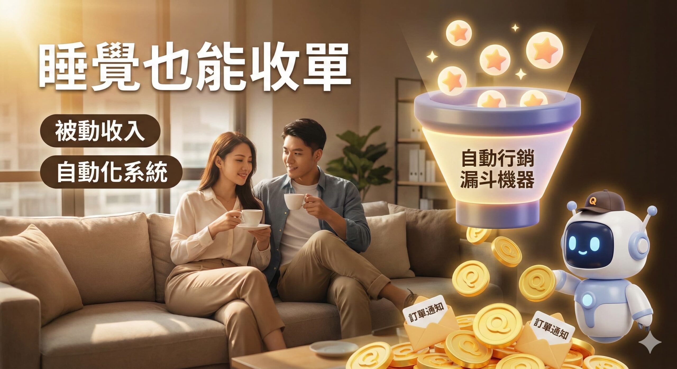 「行銷不應該靠你每天親自推,而是靠系統自動運作。這門課程帶你建立完整的行銷漏斗,從鉤子產品設計、私域流量建立、Email 自動化行銷,讓你的系統 24 小時自動吸引客戶、培育名單、完成成交。」